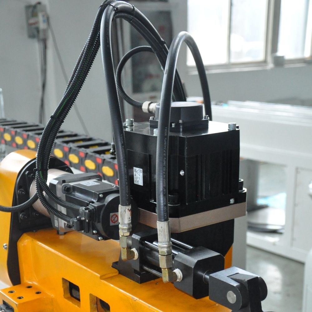 This machine features an imported hydraulic system and PLC (standard configuration), with an optional IPC system for enhanced control flexibility. Multiple groups of pipe-bending programs can be stored, making it suitable for batch production and diversified manufacturing needs. The built-in self-diagnostic system can detect errors immediately, reducing downtime and improving operational safety. An automatic lubrication system for moving parts ensures long-term durability and reduces maintenance requirements.